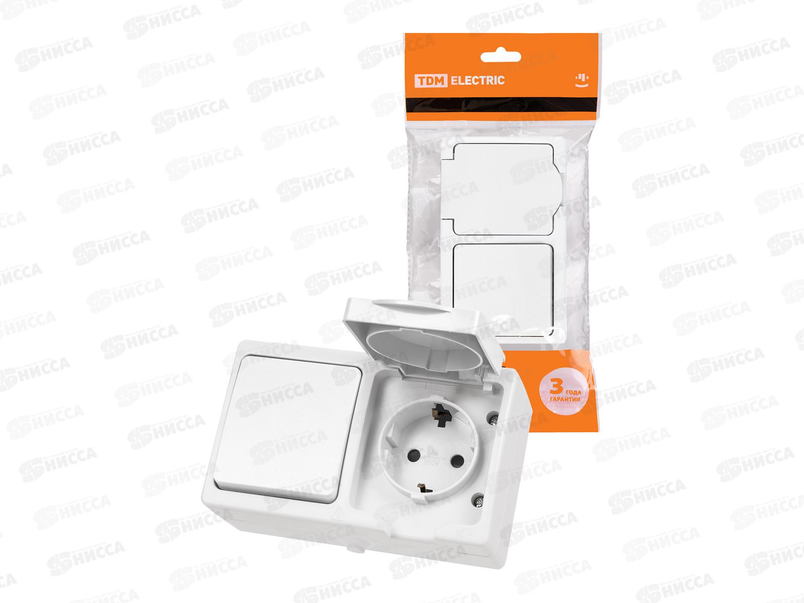 Блок выключатель 1кл горизон+розетка 2П+З с з/ш БКВР TDM 1010