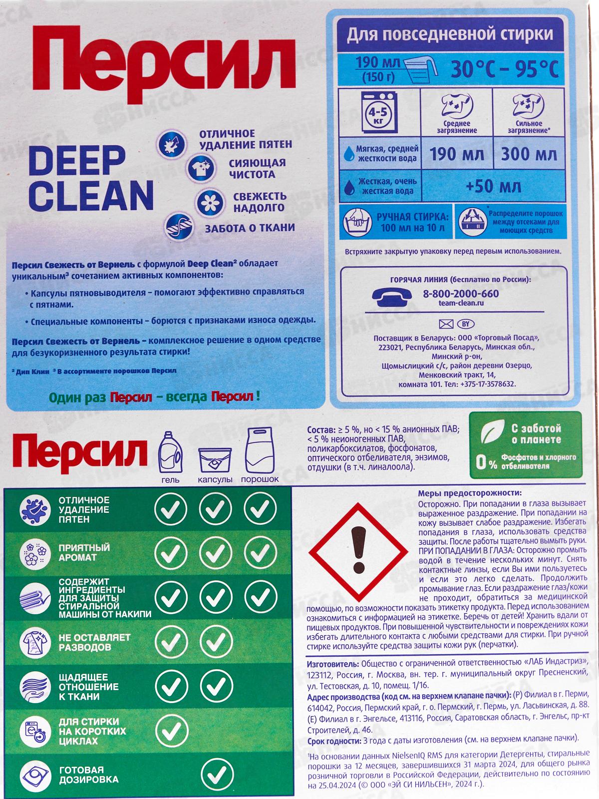 ПЕРСИЛ стиральный порошок 450г Свежесть Вернеля Эксперт автомат *24